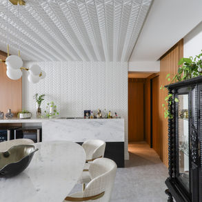 Nossa cliente nos procurou com o desejo de atualizar a decoração de sua sala e integrar a varanda com as salas de jantar e estar. Apaixonada por música, drinks e bons momentos com amigos, ela queria um espaço que refletisse seu estilo de vida acolhedor e festivo.